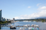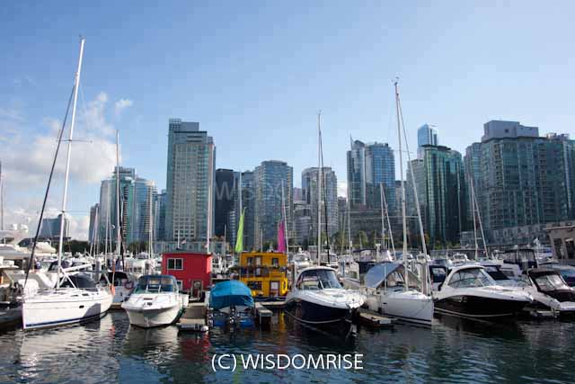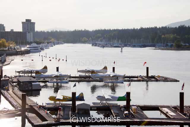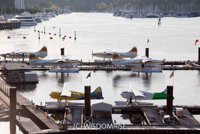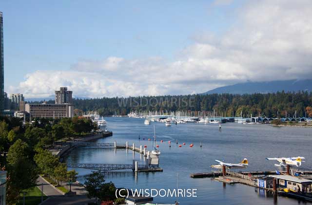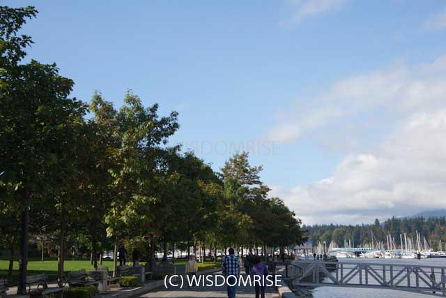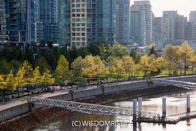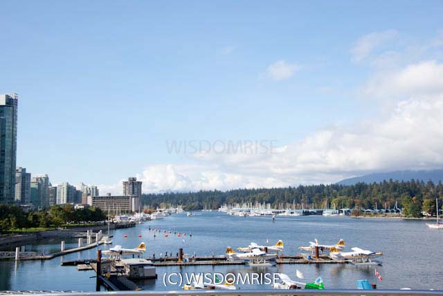 バラード入り江沿いの散策路。 バンクーバーオリンピックのメディアセンターになったコンベンションセンターから スタンレーパークのSeaWallに続く。 入り江の向こうにはノースからウエストの山々が広がり、波間にはヨットや貨物船、 そして、水上飛行機が発着していく。早朝、夕方と輝く海と山々の景色が広がる。