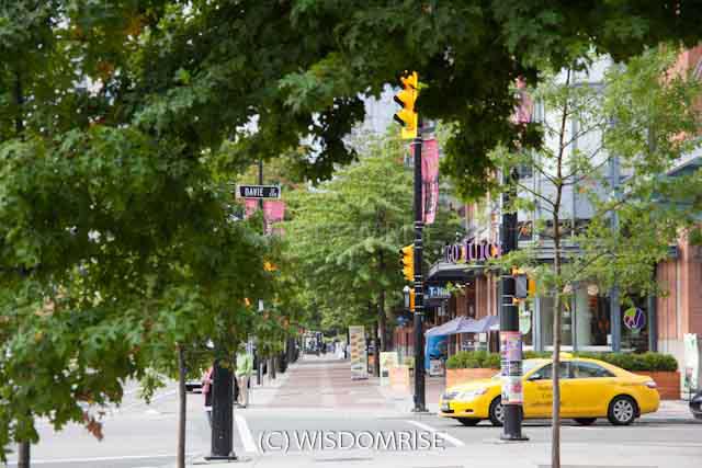 かつては鉄道労働者が住む倉庫街で栄えたが、1940年代には貨物輸送が鉄道から自動車へと移り、 1970年代には使われなくなった倉庫が立ち並ぶ荒廃した地区になってしまった。 そして、1986年のExpo'86を機に歴史地区に指定され、大きく変貌していく、 以来、芸術家が住み始めギャラリーやカフェ、レストラン、ショップが並ぶおしゃれで魅力ある地区に生まれ変わった。 バンクーバーで三軒ある地ビールが飲める醸造パブのひとつのイエールタウン ブリューイングもここにある。