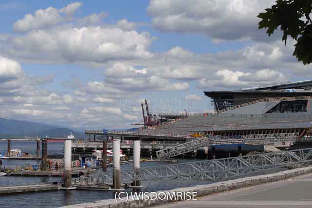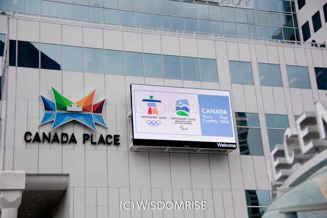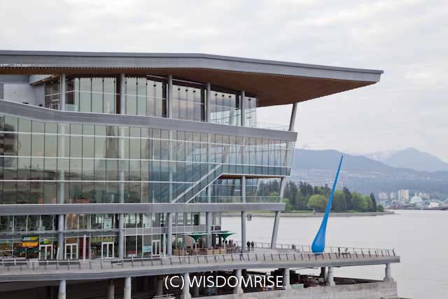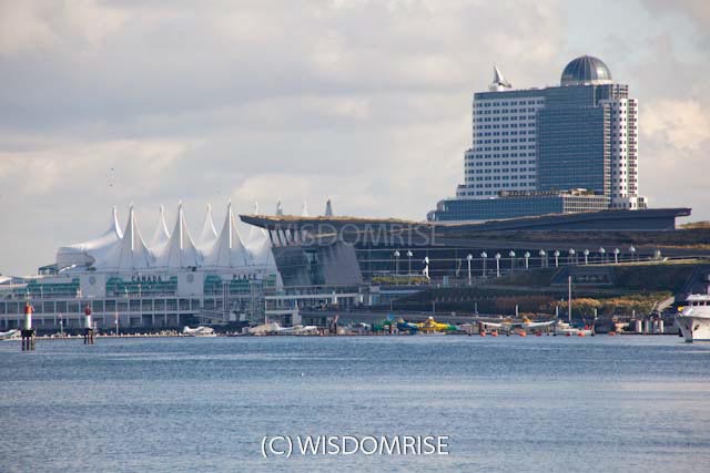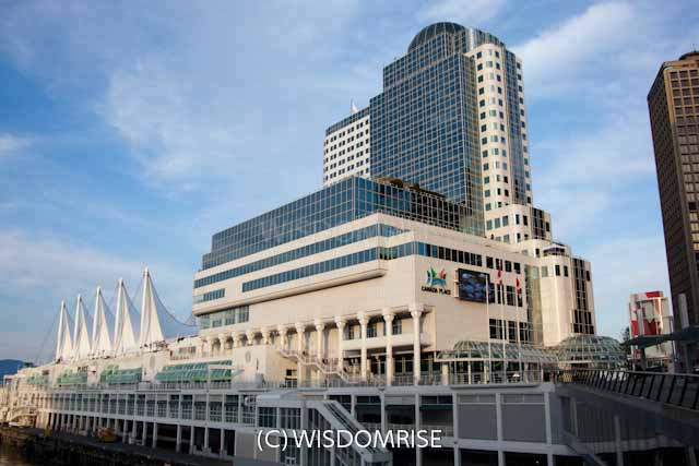 ウォーターフロントにあるカナダプレイスとバンクーバーコンベンションセンター。 オリンピック開催中、報道の拠点となりました。ダウンタウンの中心のとても便利な場所です。 カナダプレイスは1986年に開催されたバンクーバー万博のカナダ館を使用した施設で、 クルーズ船のターミナル、ホテル、アイマックスシアターなどがある。 五つの帆のデザインが特徴で大型クルーズ船との写真がバンクーバーを紹介する写真でよく見かける。 コンベンションセンターは新たに建設され、2009年にオープンした。 屋根には植物が敷き詰めらたグリーンルーフで環境に配慮されている。 コールハーバー側にオリンピックの聖火台があり新たな観光場所になっている。