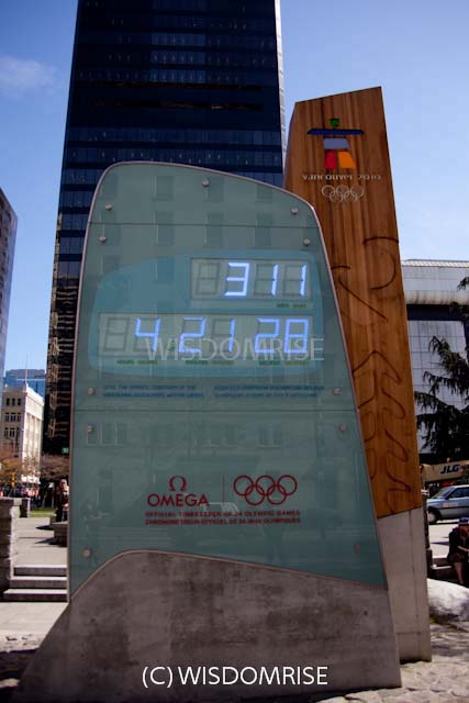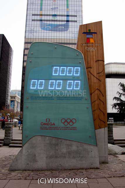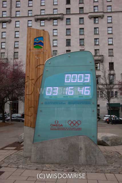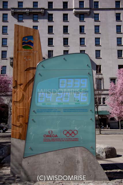 バンクーバー美術館の前に建てられたカウントダウンクロック。 表と裏、同じように見えますが、 オリンピックとパラリンピックで、カウントダウンの日数が違います オリンピック、パラリンピック終了後は撤去されまた。