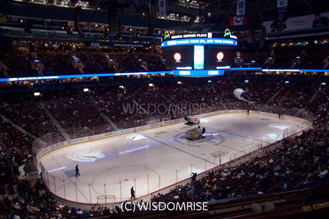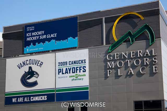 NHLのバンクーバー カナックスの本拠地で、オリンピック開催時はカナダホッケープレイスの名前で呼ばれた。普段はGMプレイスの名前で使用されている。 (オリンピックの翌年の2011年からはロジャース アリーナとカナダの通信会社の名前に変わっています。写真を比較して頂くと分かります。) 。カナダではアイスホッケーが国技であり、 地元では最も盛り上がる競技でしょう。